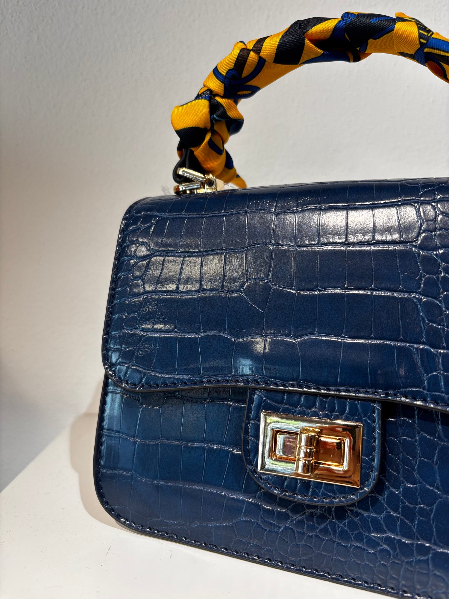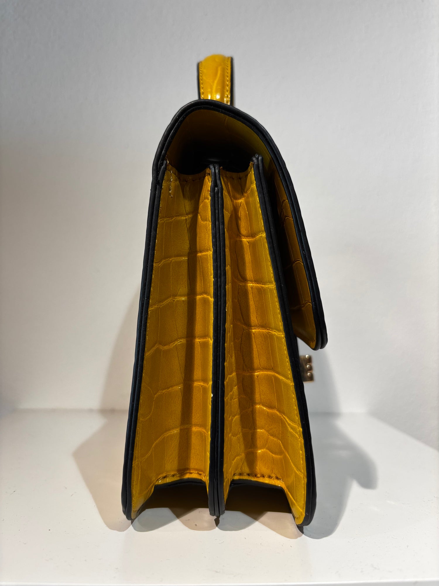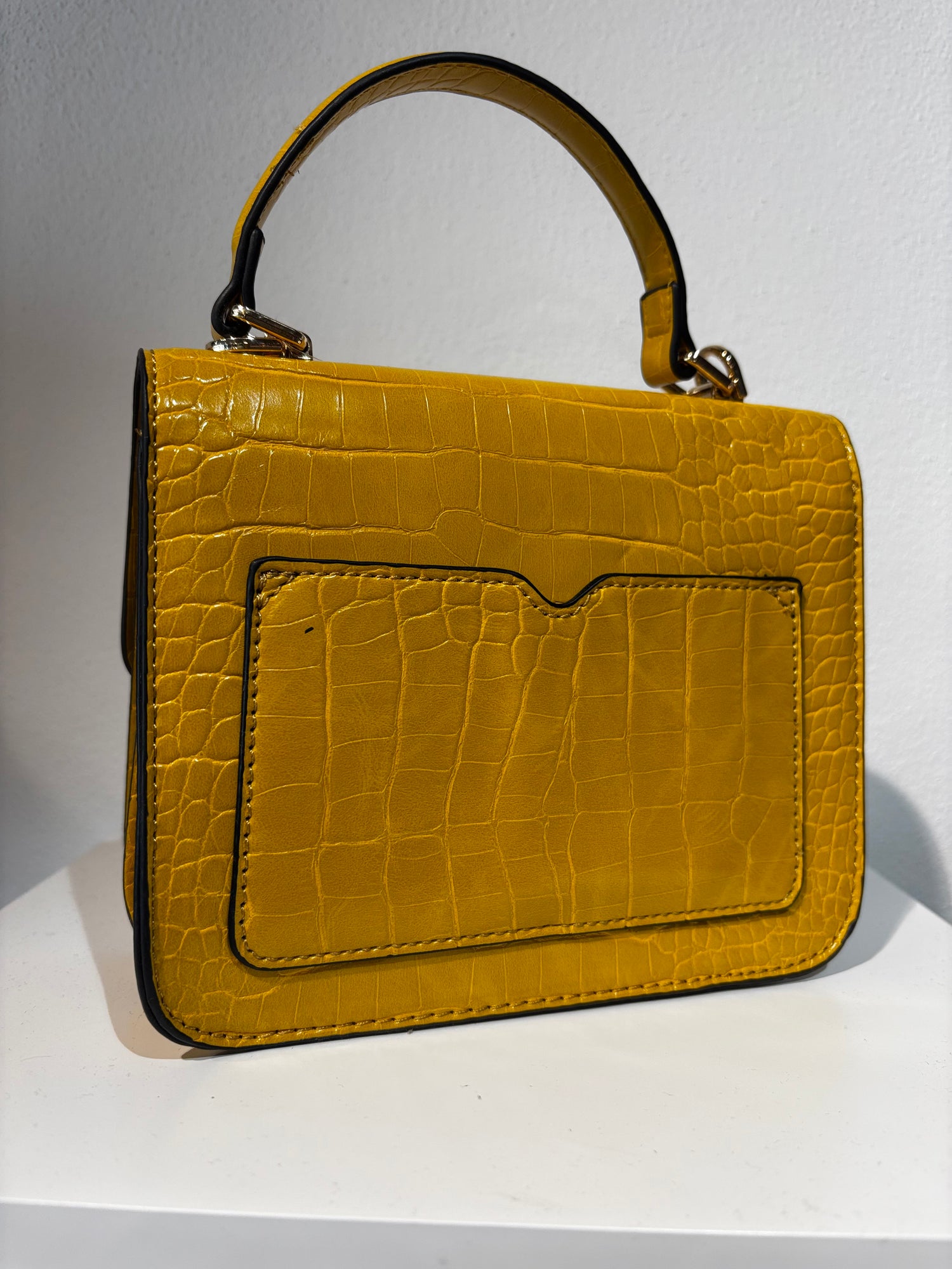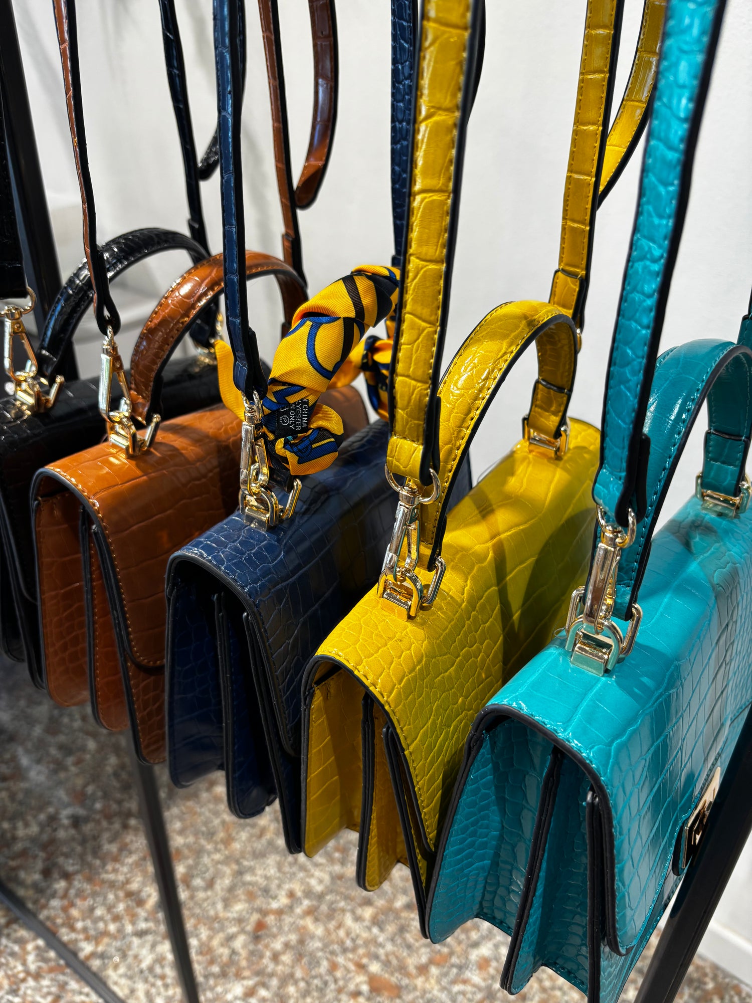 Mini borsa rigida di forma quadrata con maniglia e tracolla staccabile e regolabile.