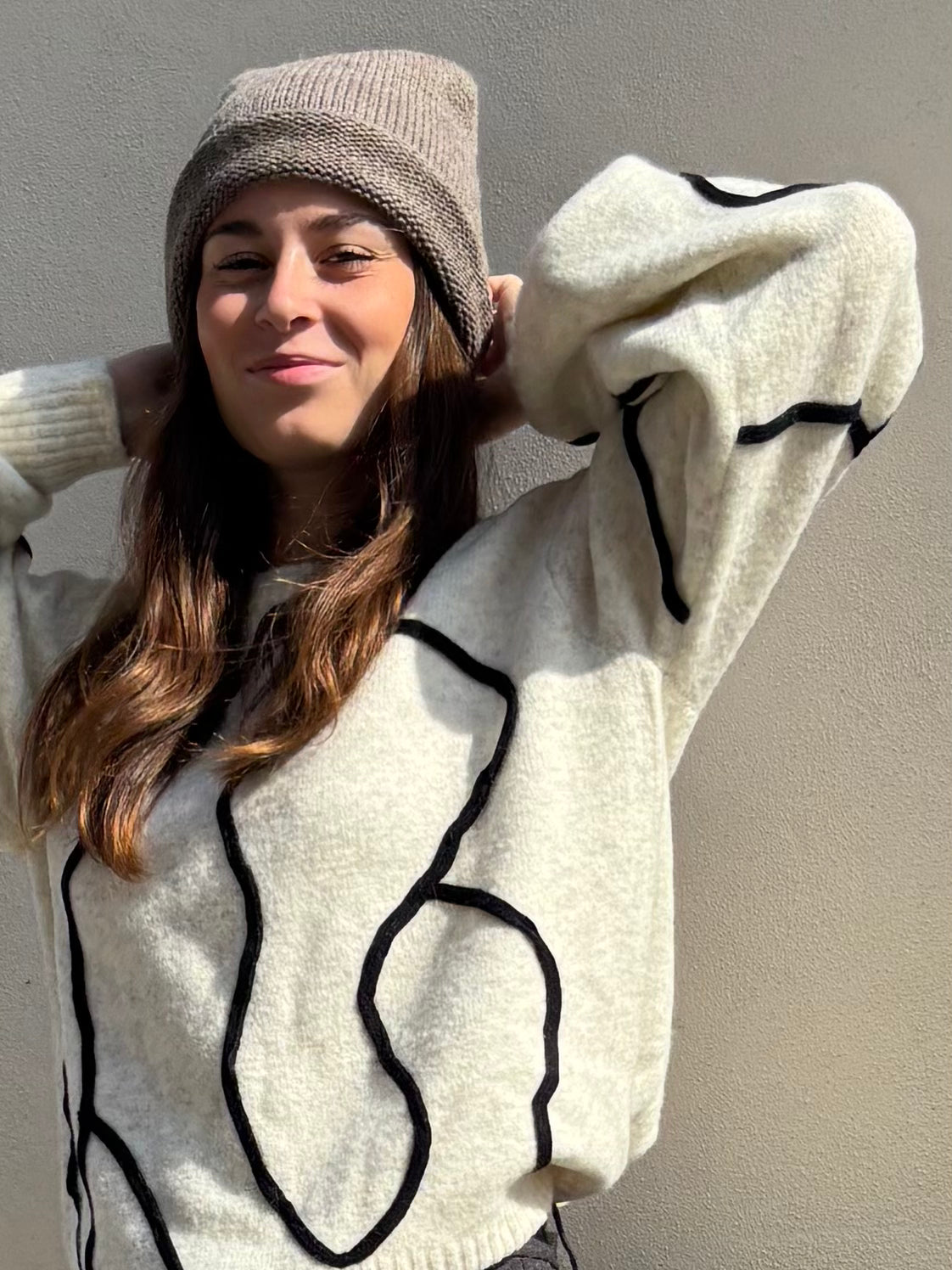 Maglione a girocollo con manica a palloncino dalla linea morbida e rilassata.