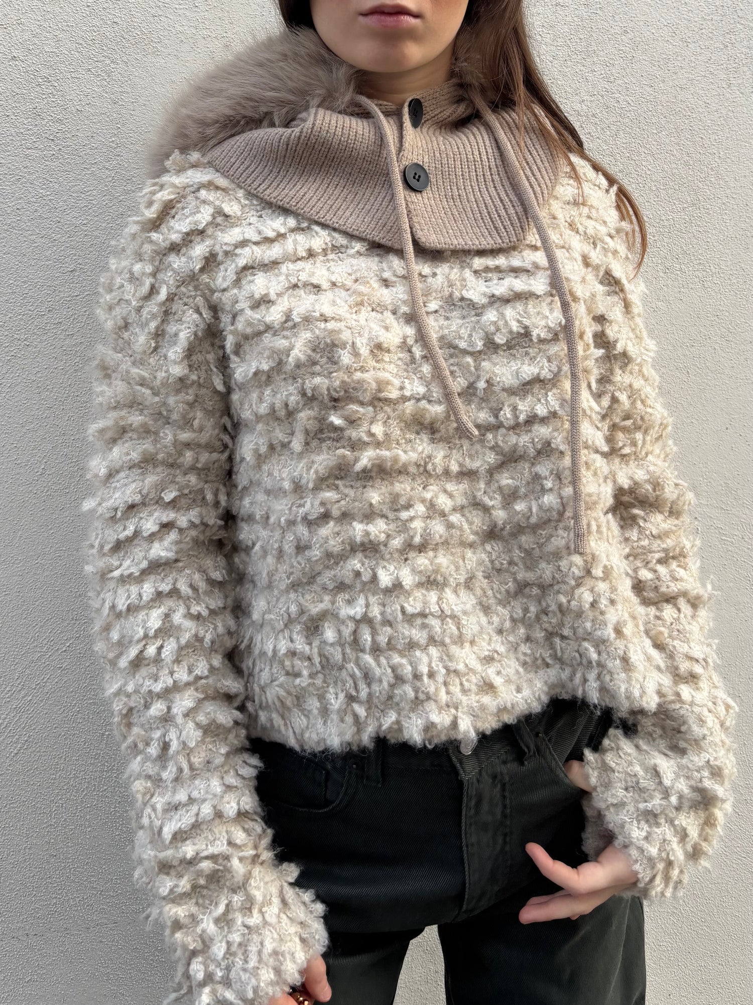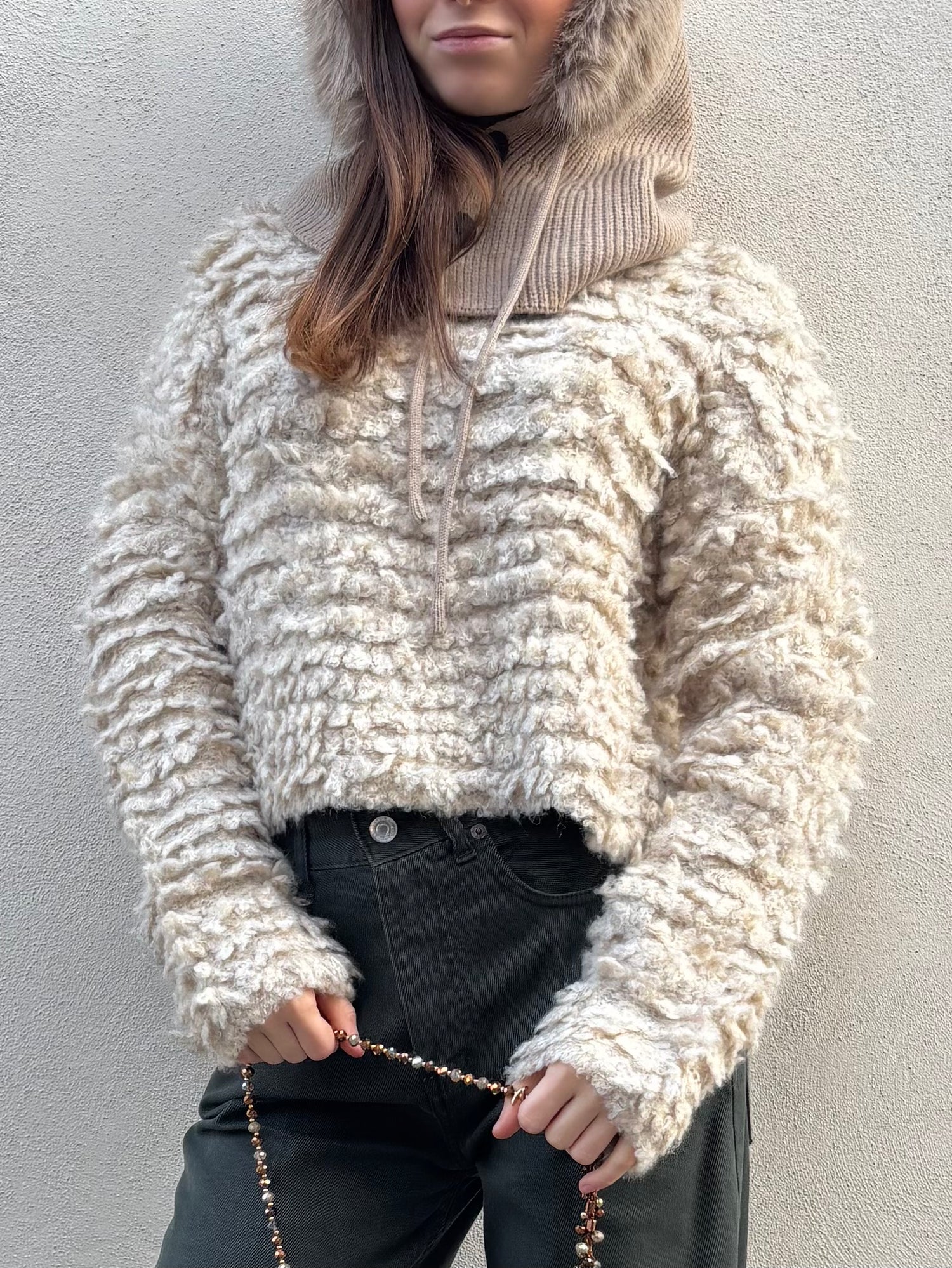 Maglioncino shaggy a girocollo con manica morbida e dritta.